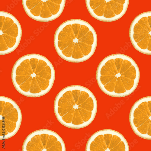 Obraz premium Orange seamless pattern Slices of citrus fruit on an orange background Retro style