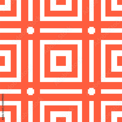 © FRESH TAKE DESIGN, Obraz premium Orange seamless pattern with white squares