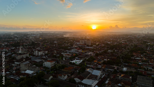 © Wili, Fototapeta premium Orange Sky and Clouds Before Sunset Yogyakarta City Indonesia. Selective focus and blurry image