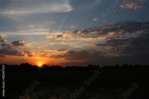 Fototapeta premium Orange sky and sunset evening for the background.