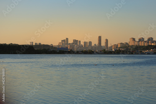 Fototapeta premium Orange sky at sunset in the evening. Seascape overlooking the coast in the city of Istanbul