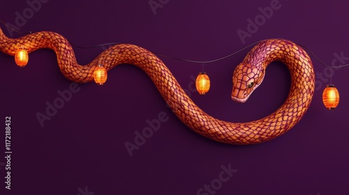Obraz premium Orange Snake Coiled With Illuminated Lanterns