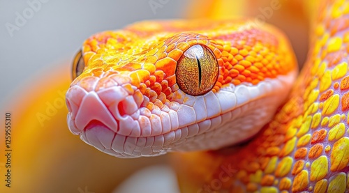 © matoya, Obraz premium Orange snake portrait, studio shot, blurred background, reptile wildlife