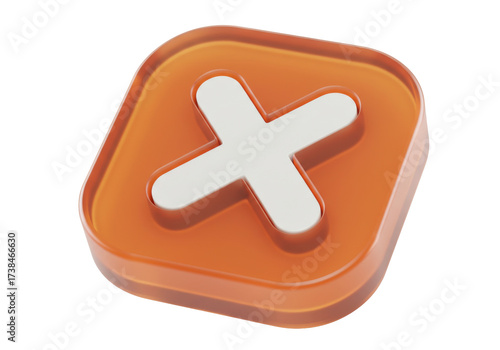 © Daniel, Obraz premium Orange square icon with white cross isolated PNG, cancel or delete button for user interface design and web development