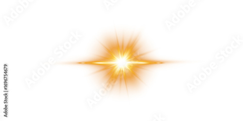 © Orange Sky, Fototapeta premium Orange Star Light Sparkle. Glowing Flare Effect and Shimmer Shine Glow Elements