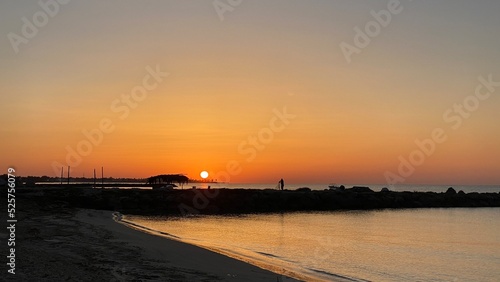 Obraz premium orange sunrise cloudless sky on island of Djerba