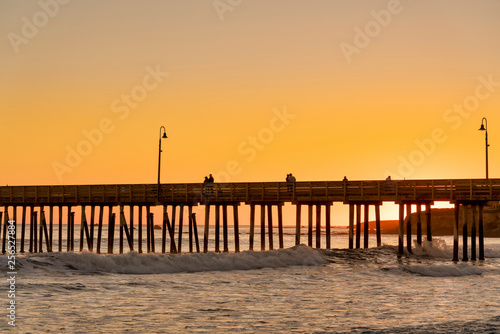 © Mark, Fototapeta premium Orange sunset at the Beach and Pier