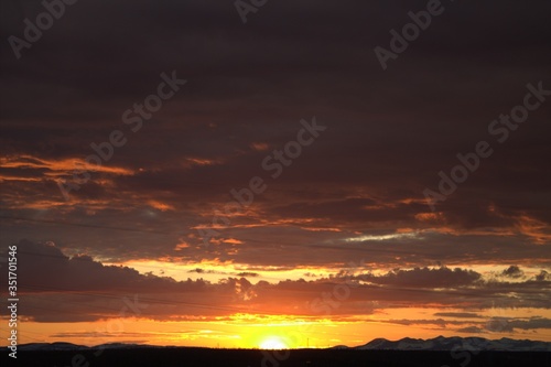 © Кузнецова Наталья, Obraz premium Orange sunset at the beginning of the Polar summer