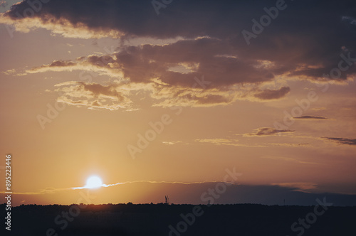 Obraz premium orange sunset in the clouds over the forest