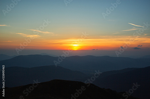 © Dawid, Fototapeta premium Orange sunset in the Polish mountains