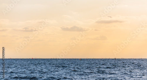 Fototapeta premium Orange sunset landscape over the blue sea.