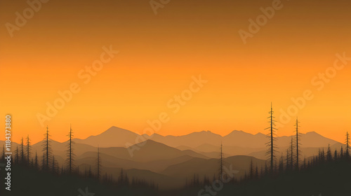 © queen, Fototapeta premium Orange Sunset Mountain Illustration