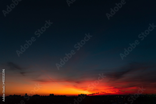 © Maksim Shebeko, Obraz premium orange sunset over big city