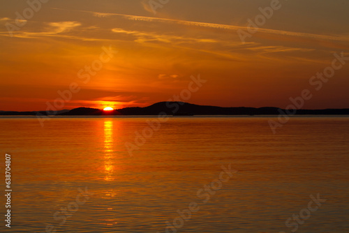 © photogeek, Fototapeta premium Orange Sunset over Tranquil Sea with Reflection