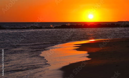 Naklejka premium Orange Sunset Seascape with Mollarella sand beach (spiaggia di mollarella)...