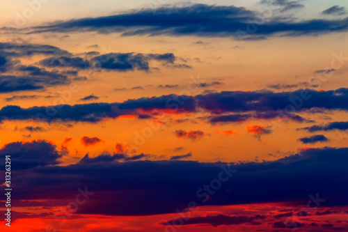 © Pellinni, Fototapeta premium orange sunset sky with clouds. beautiful nature background