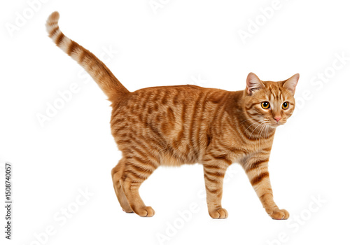 Fototapeta premium Orange tabby cat walking on a transparent background for various creative applications