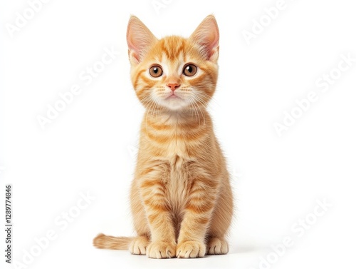 © Ishika, Fototapeta premium Orange Tabby Kitten Sitting on White Background