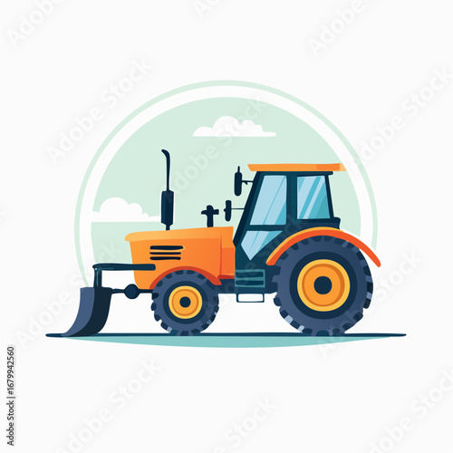 Fototapeta premium Orange Tractor Illustration In Flat Design