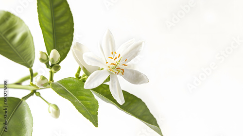 Obraz premium Orange tree blossom single white flower isolated on white Neroli citrus bloom : Generative AI