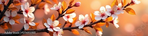 © Sarayuth, Obraz premium Orange tree branches laden with white flowers, blossoming, bloom, orchard