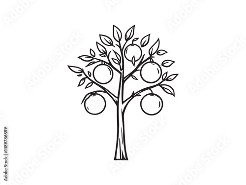 © Nazma Begum, Obraz premium Orange Tree line art vector illustration