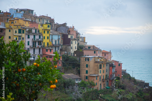 © Echo, Obraz premium orange tree with Vernazza in the background, Cinque Terre, Italy