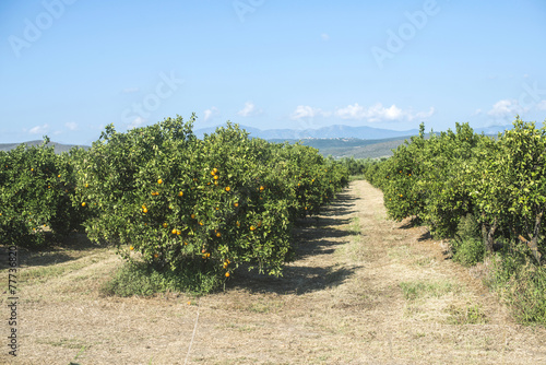 © Deyan Georgiev, Naklejka premium Orange trees in plantation