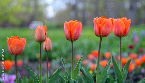 © Bagas, Fototapeta premium Orange tulips in spring garden