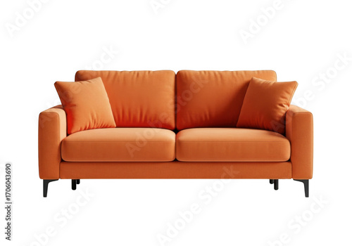 Fototapeta premium Orange two seater sofa with cushions isolated on transparent background