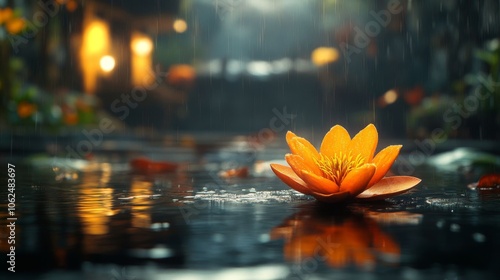 © Vladimir, Fototapeta premium Orange water lily in serene pond.