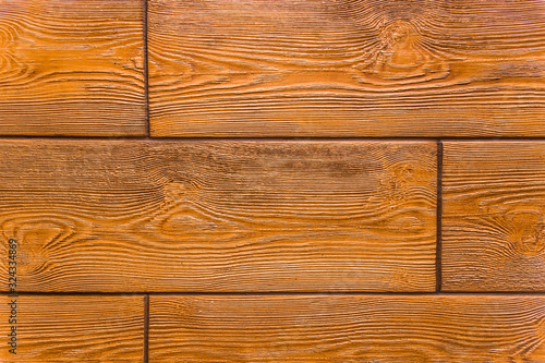 © Andrey, Naklejka premium Orange wood texture, wooden design element, brown board for floor or table, background