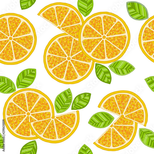 © photo-nuke, Obraz premium Oranges slices seamless pattern. Hand drawn fresh tropical citrus fruit.
