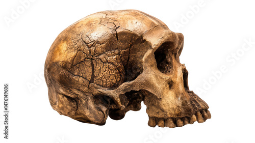 Fototapeta premium Orangutan Skull with Detailed Bone Texture Isolated on White Background