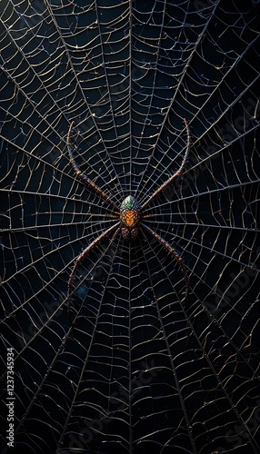© Brother Stocks, Obraz premium Orb Weaver Spider Centered In Its Web