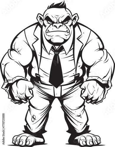 Fototapeta premium Orc Magnate Full Body Corporate Attire Emblem Stylish Savage Orc in Tailored Suit Logo Vector