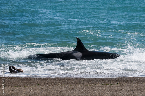 Fototapeta premium Orca attacking sea lions,Peninsula Valdes, Patagonia Argentina