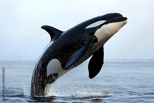 © Dil, Fototapeta premium Orca Breach: Pacific Ocean Predator Jump.