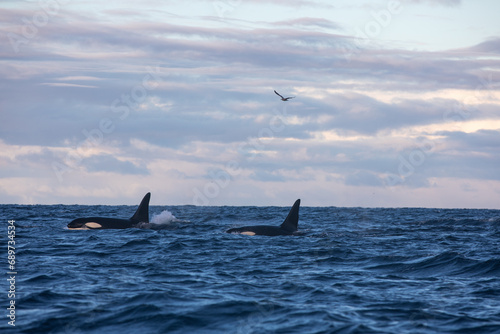 Fototapeta premium Orca (killer whale) swimming in the cold waters on Tromso, Norway.