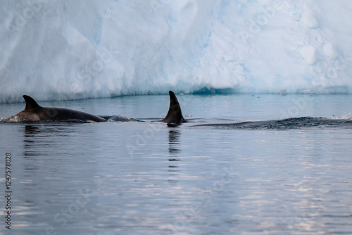 Fototapeta premium Orca's back in the ocean. Killer whale in the wild nature. Antarctica. Orcinus orca.