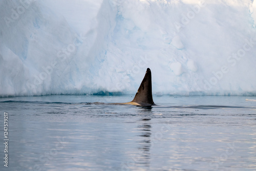 Fototapeta premium Orca's back in the ocean. Killer whale in the wild nature. Antarctica. Orcinus orca.