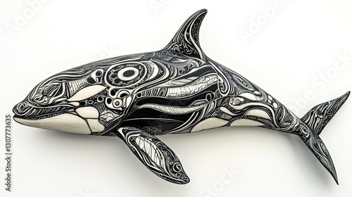 Obraz premium Orca Sculpture: Intricate Black and White Ink Design