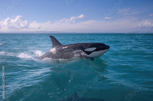 © NeuralNiche, Fototapeta premium Orca T019 from Bigg's pod chasing a sea creature