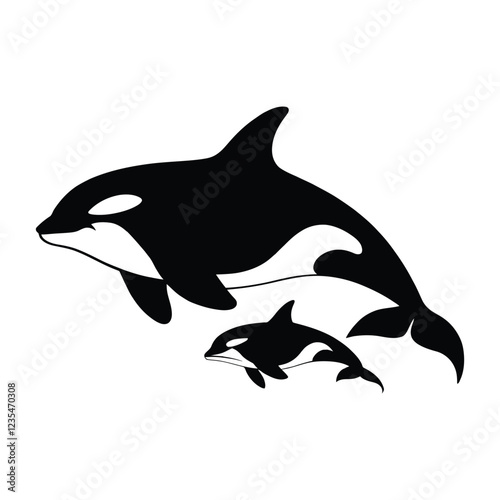 © MdMasudRana, Fototapeta premium orca whale family silhouettes set