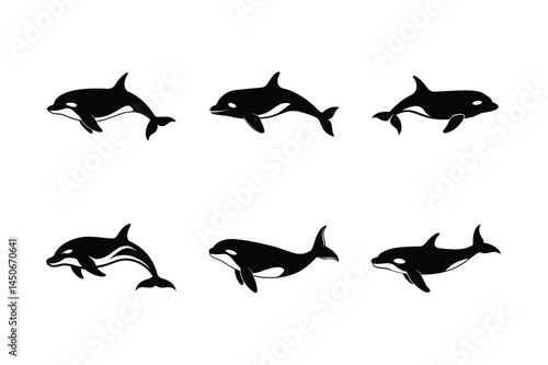 © Madhusudan, Obraz premium Orca whale silhouette vector bundle, Orca whale silhouette