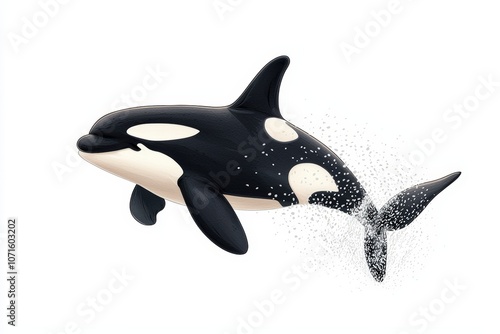 © Chano_1_na, Fototapeta premium Orca whale swimming, white isolate background