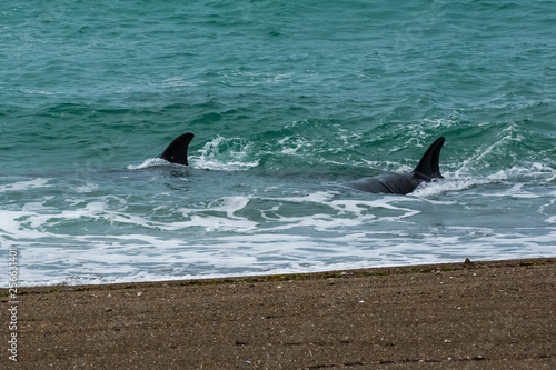 Fototapeta premium Orcas family, hunting in Patagonia, Peninsula Valdes
