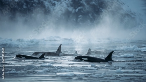 Fototapeta premium Orcas in arctic ice