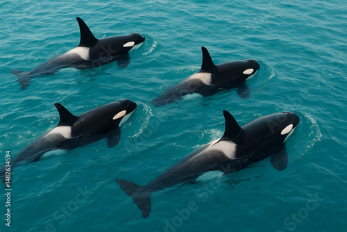 Obraz premium Orcas in Turquoise Waters: Majestic Killer Whales at Play