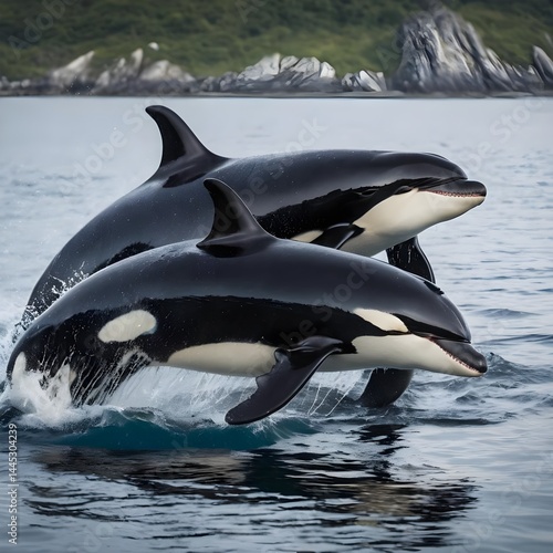 © Liang, Fototapeta premium Orcas leaping from the ocean